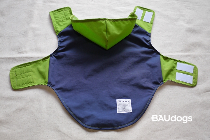 【防水】アウトドアマント フード付き ネイビー×グリーン R-60