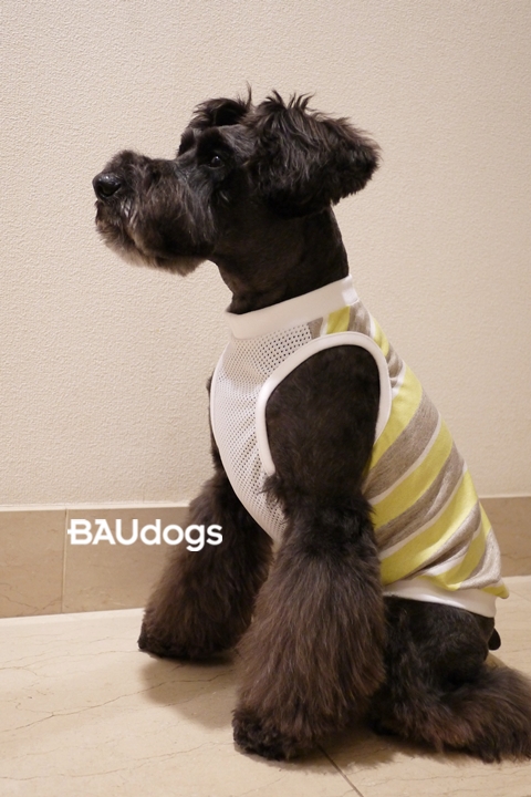 (B品)袖口の大きいタンクトップ UVカット素材×メッシュ シュナウザーモチーフプリント Mサイズ