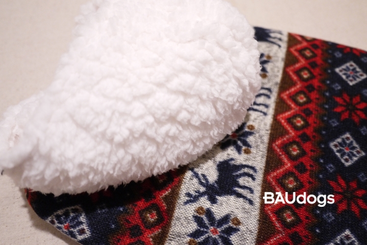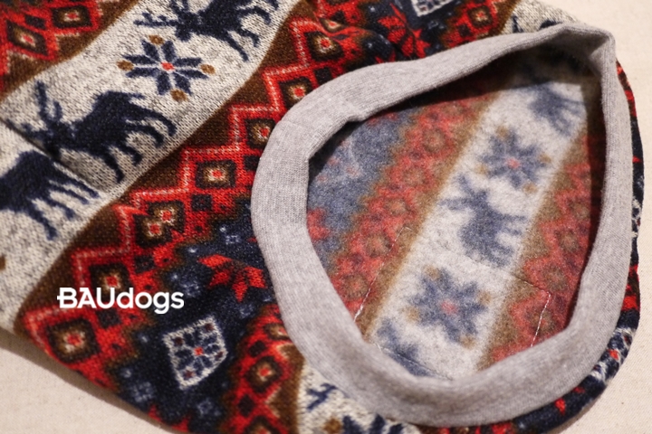 身頃は軽くて暖かく手触りなめらかなノルディック柄の裏起毛ニット。