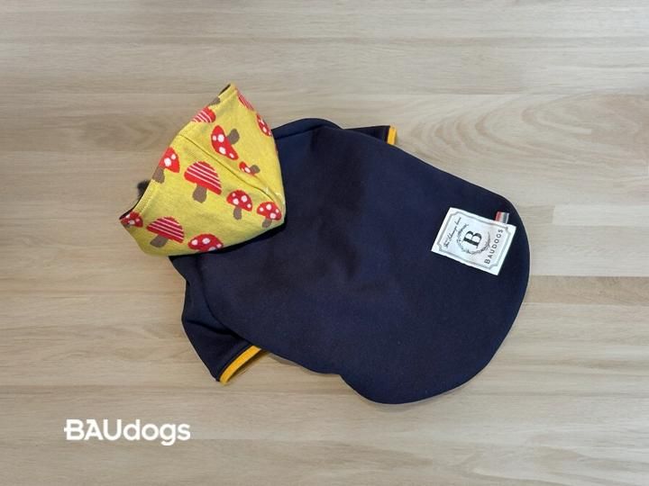 ラグランパーカー トレーナーダークネイビー フードきのこ柄 D-11