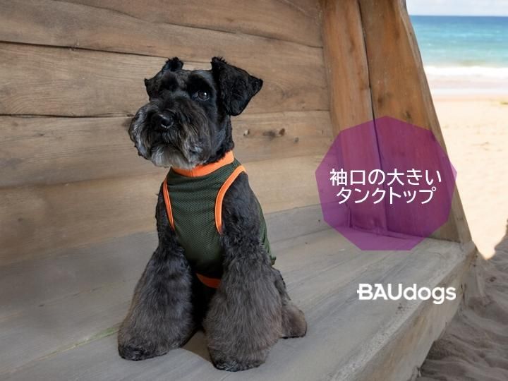 (B品)袖口の大きいタンクトップ UVカット素材×メッシュ シュナウザーモチーフプリント Mサイズ