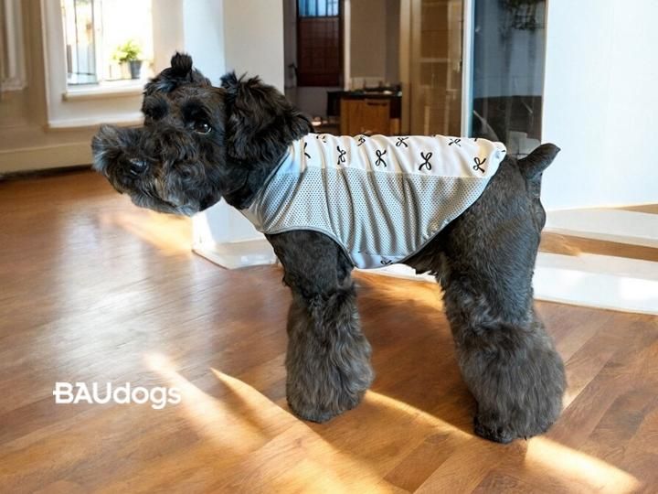 (B品)袖口の大きいタンクトップ UVカット素材×メッシュ シュナウザーモチーフプリント Mサイズ