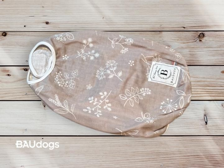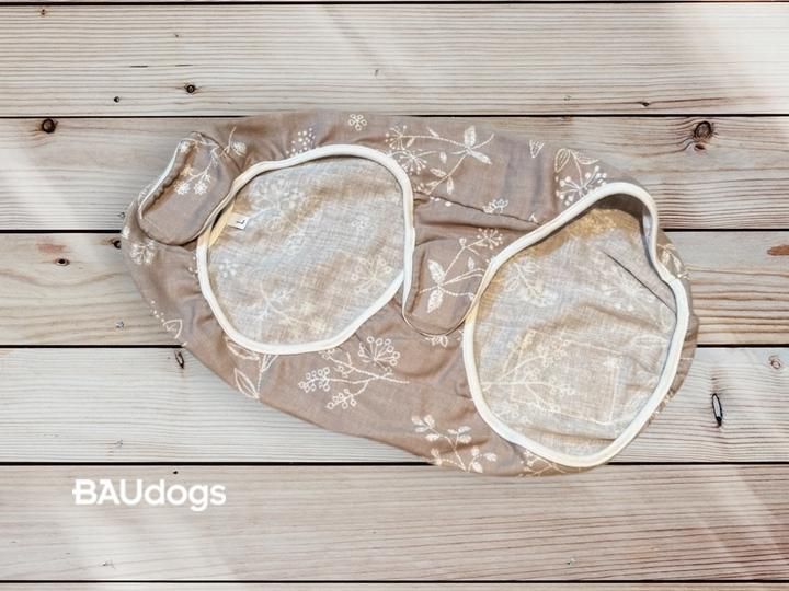 身頃・首留・腹留:ダブルガーゼ(ボタニカルステッチ柄グレージュ)