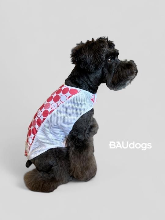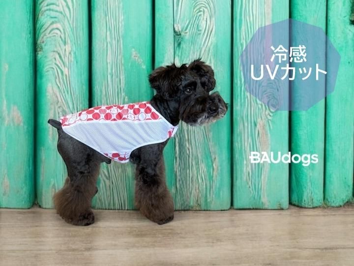 (B品)袖口の大きいタンクトップ UVカット素材×メッシュ シュナウザーモチーフプリント Mサイズ