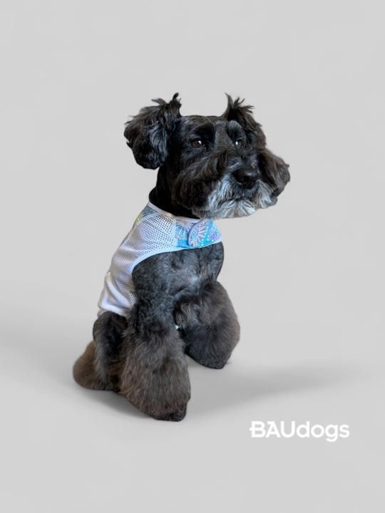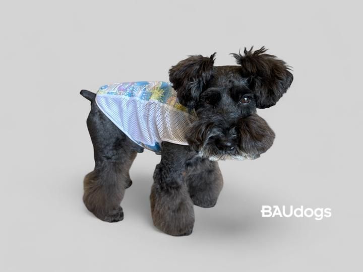 (B品)袖口の大きいタンクトップ UVカット素材×メッシュ シュナウザーモチーフプリント Mサイズ