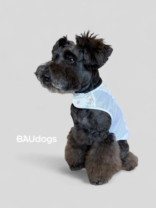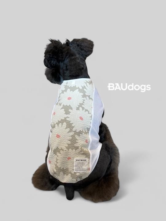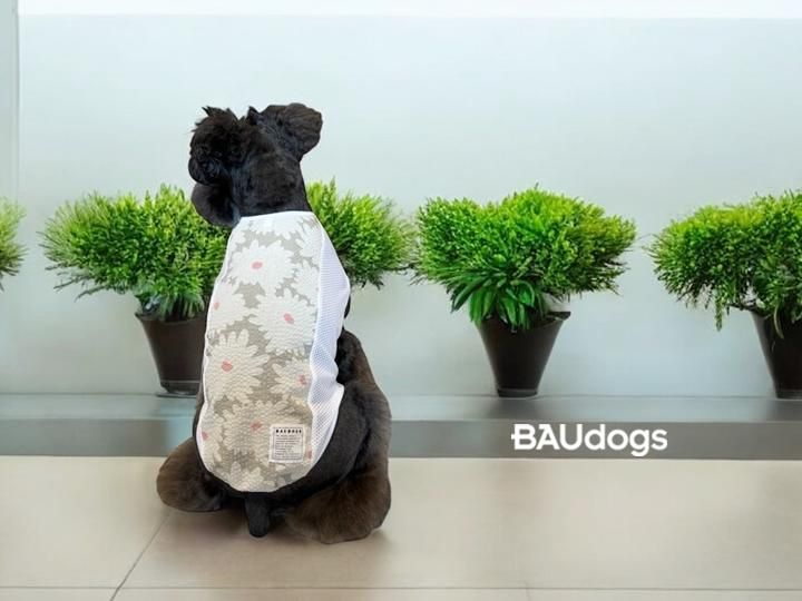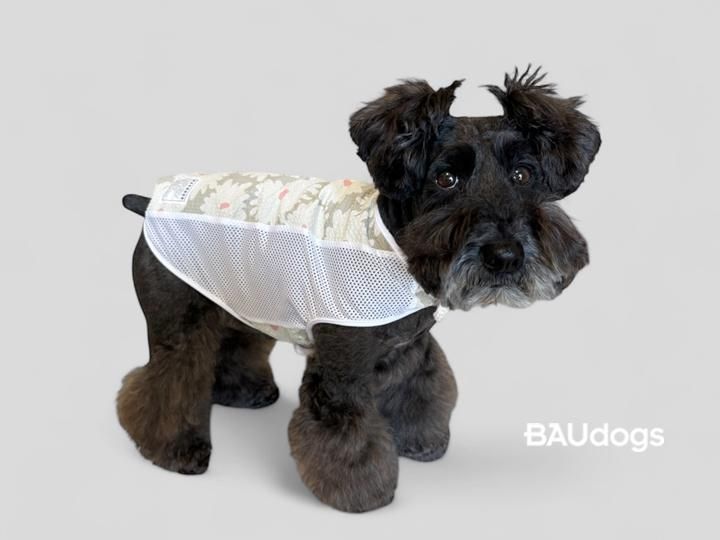 (B品)袖口の大きいタンクトップ UVカット素材×メッシュ シュナウザーモチーフプリント Mサイズ