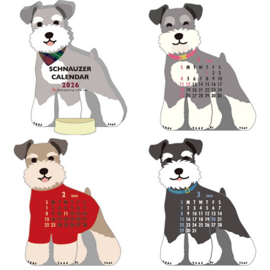 グリーティングライフのアニマルダイカットシュナウザーカレンダー2026