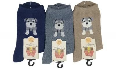 【新品】婦人靴下 シュナウザー柄 ふわふわシャギー 3足セット