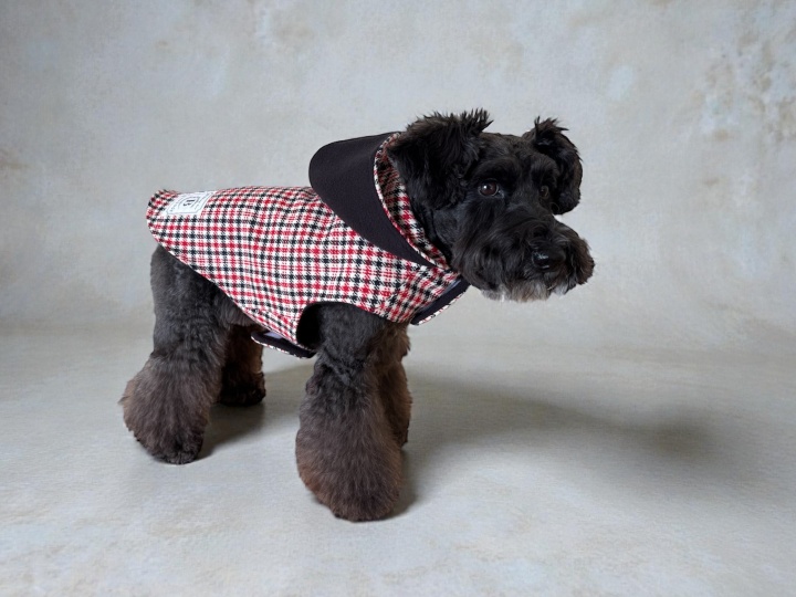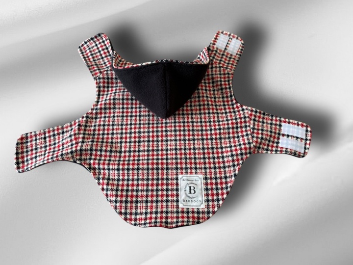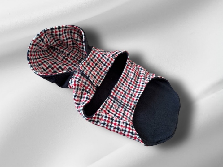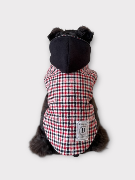 リバーシブルマント グレー×レッドチェック&パイナップルボア白